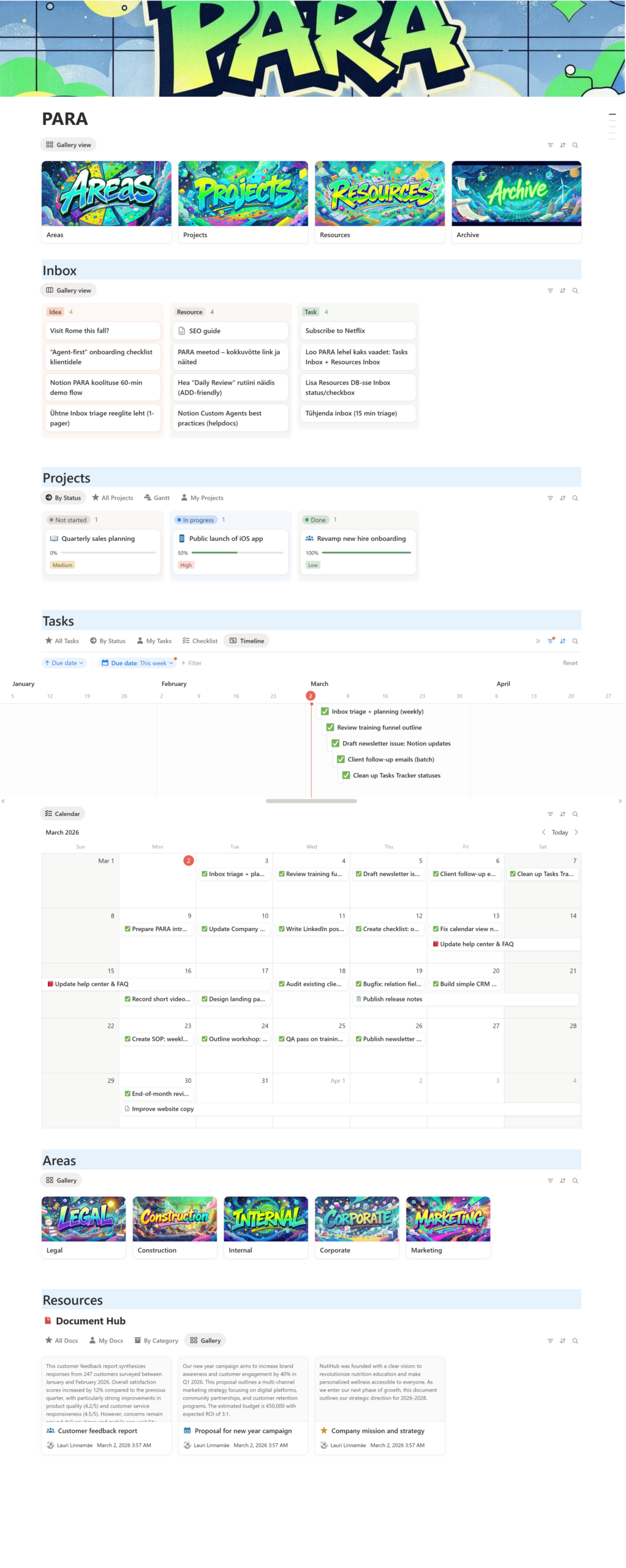 Notioni ja PARA süsteemi koostoimest loe lähemalt siit: Notion Mastery: using the PARA method with Notion
